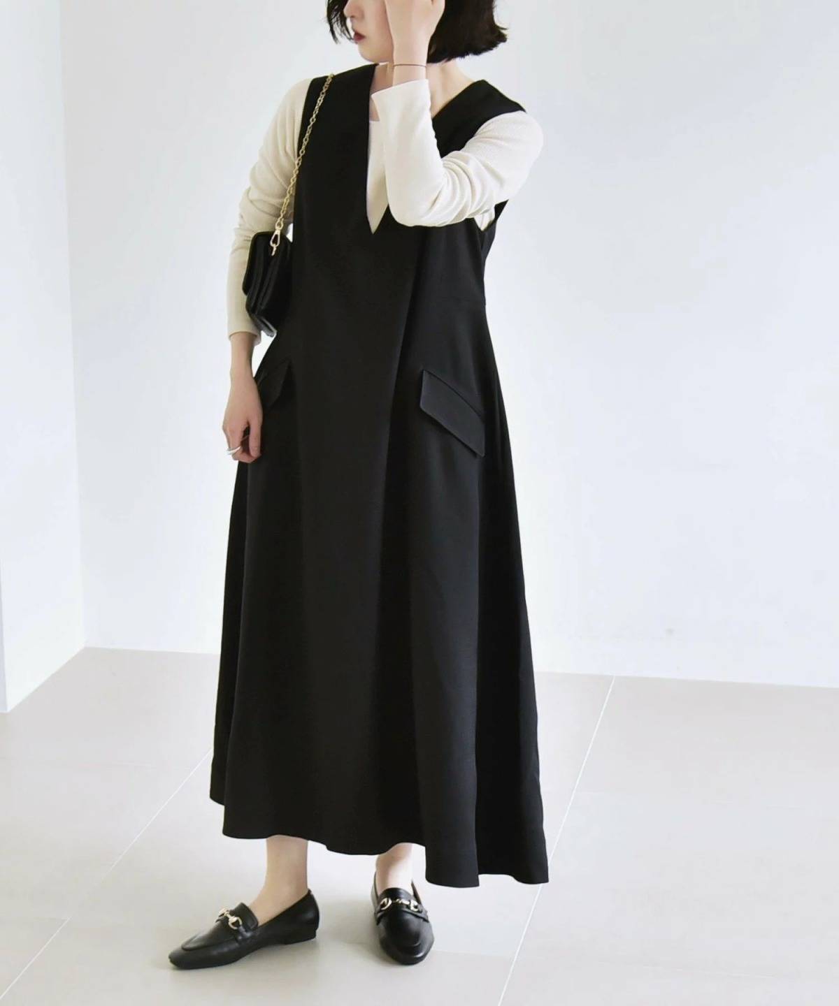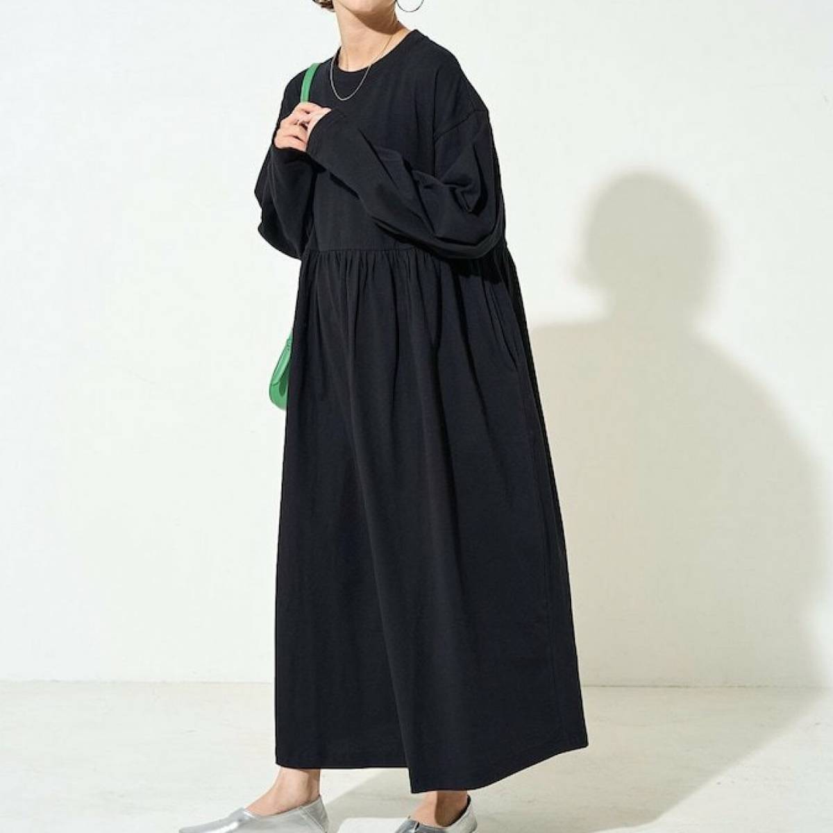 シンプルなデザインのワンピースは、2025年秋にいろいろ着回すことができます。