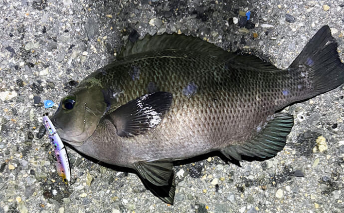 波止メバリングで想定外のメジナ登場【大阪】フローティングのプラグにヒット