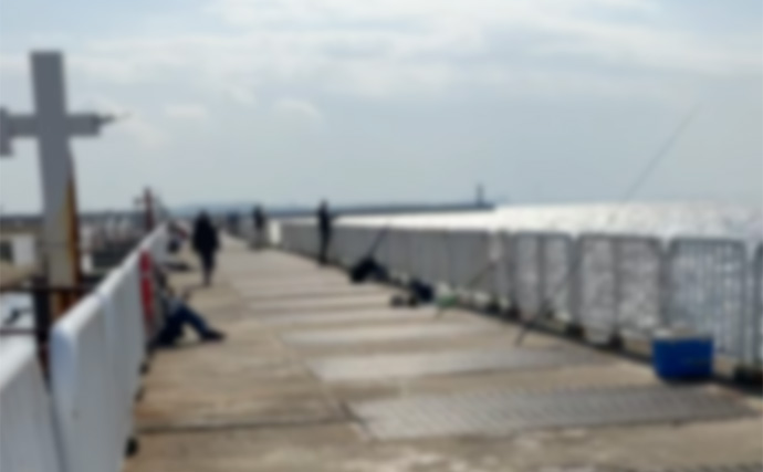 北エリアに到着したのは11時9分。サゴシ・青物シーズン開幕直前、サバ狙いで足繁く通って以来の訪問だ。前日の好釣果を見てか、普段は人が少ないこのエリアが、まさかの高密度。なんとか釣り座を確保した。