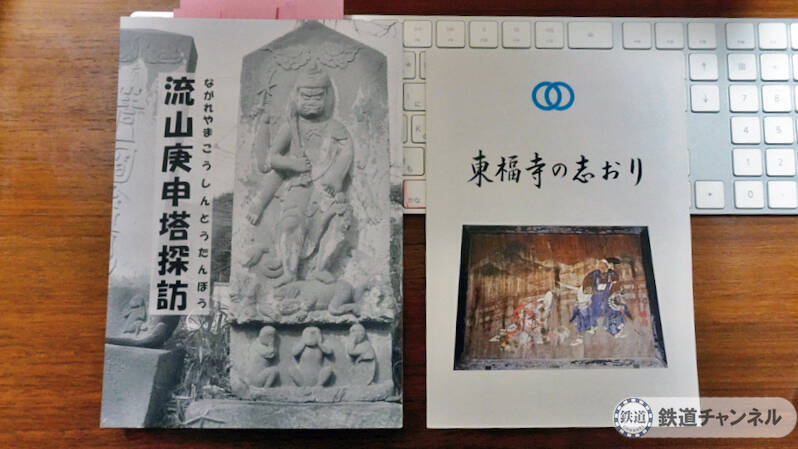 かつて本堂の屋根にのっていたのでしょうか。左奥に庚申塔が列んでいます。