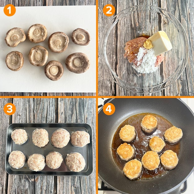 ③ ①のしいたけに片栗粉をまぶし、②のたねを適量のせる。