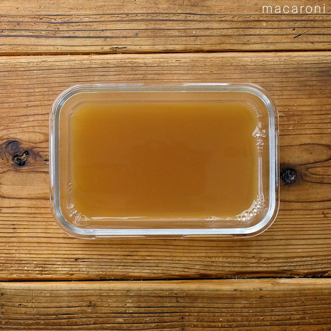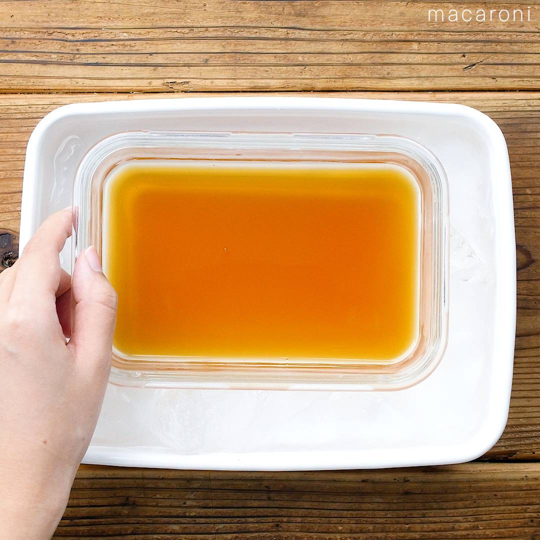 ゼラチンは80℃以上で凝固力が弱まるため、必ず冷ましてから加えてください。