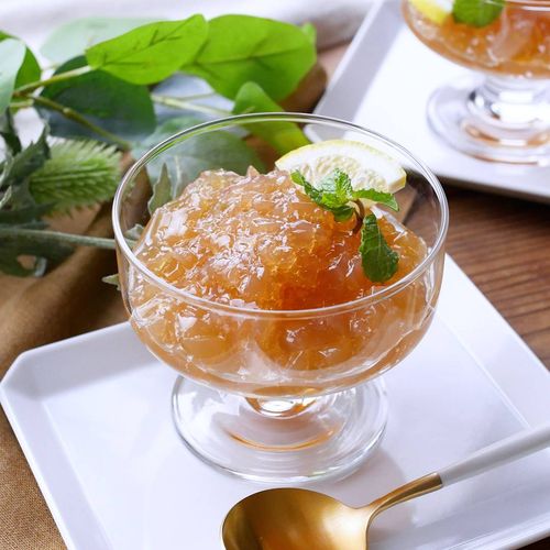 6: フォークで細かく砕き、グラスに盛り付けます。お好みでミントやレモンを添えて完成です。