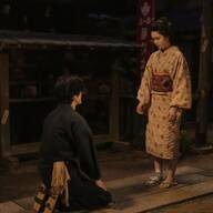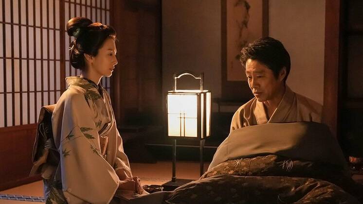 ところが、対面した見合い相手・銀二郎(寛一郎)と父はまさかのちょんまげ。武士の心を守っていると聞き、「切るんじゃなかった......」とへたりこむ司之介に、「まさに落ち武者じゃ」と勘右衛門は呆れ、傳も「すみません。うちの落ち武者が」で、両家は笑う。