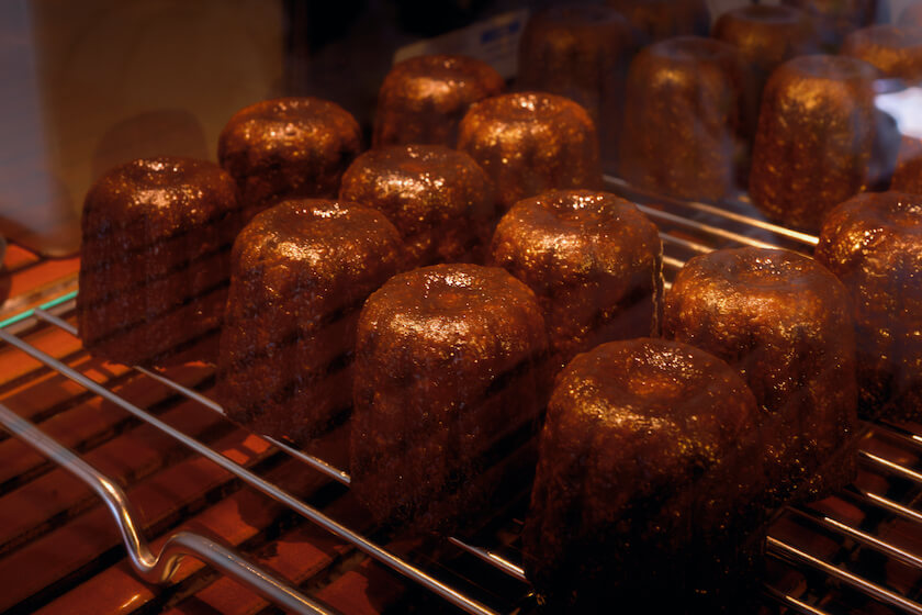店名のとおり主役はフランス・ボルドー地方発祥の伝統菓子「カヌレ」。外はカリッと、中はモチッとした食感が特徴で、厨房を併設した店舗では朝から2時間ごとに焼きたてを提供する。焼き上がりまでに40分を要するが、その手間と時間を惜しまないからこそ生まれる味わいは、多くのファンを魅了している。