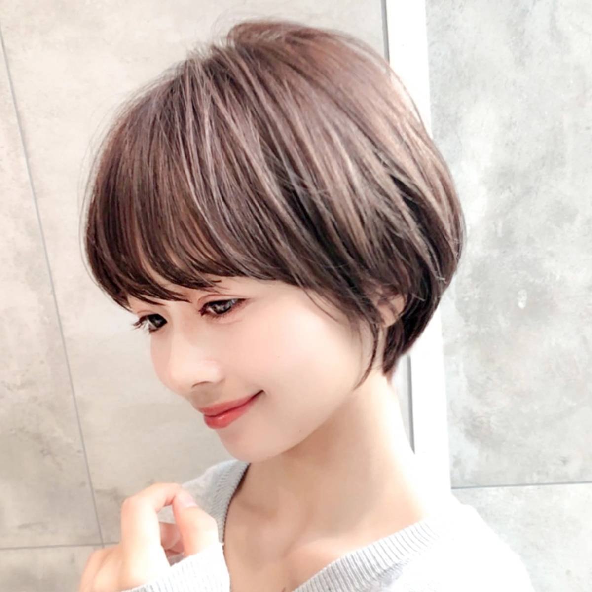 丸みのあるシルエットのショートボブは、女性らしく見えるところがポイント!