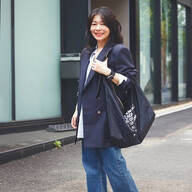 身長167cmの筆者は明るめのデニムに合わせたかったため、オフのLサイズを購入しました。お尻は半分ほど隠れる丈感で、リラクシーなムードが出ますよ◎