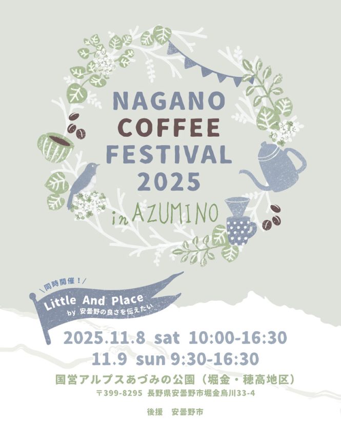11/8(土)11/9(日)『長野コーヒーフェスティバル2025』2年ぶりの開催!全国から自家焙煎珈琲店が集結!人気マルシェと同時開催で計約100店が国営アルプスあづみの公園に!@長野県安曇野市