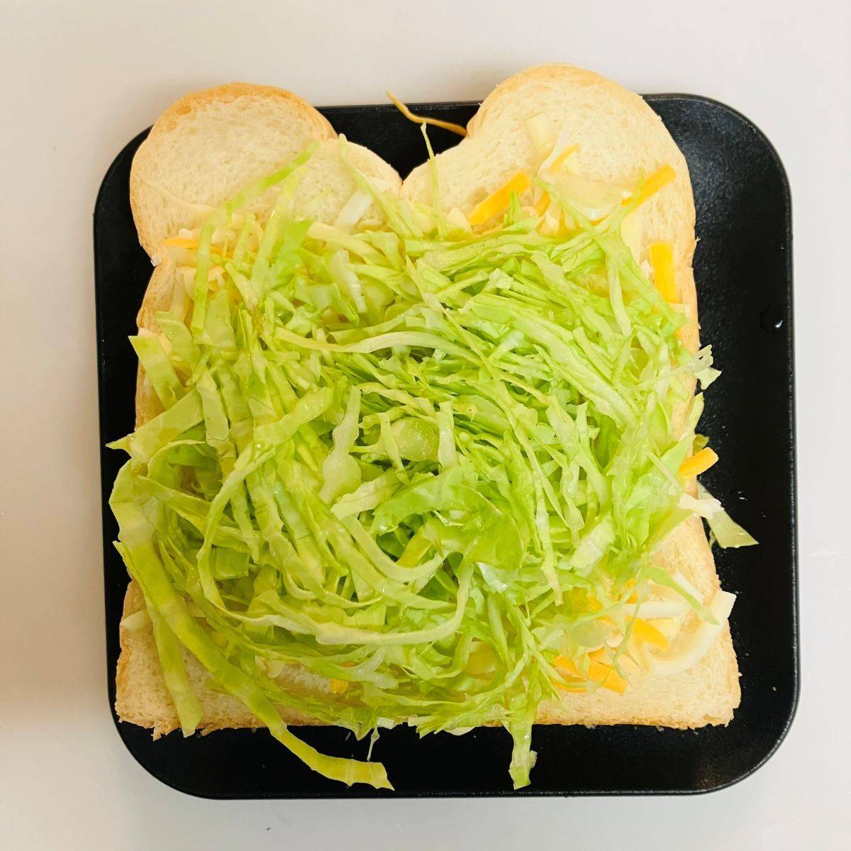 食パンに、とろけるチーズ・千切りにしたキャベツの順でのせます。