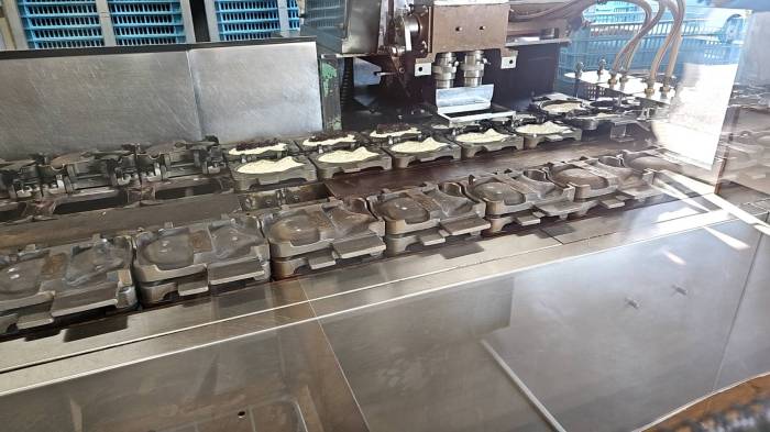 そんな店内には、製造ラインを見学できるスペースが設けられている。たい焼きが次々と作られていく様子は圧巻。