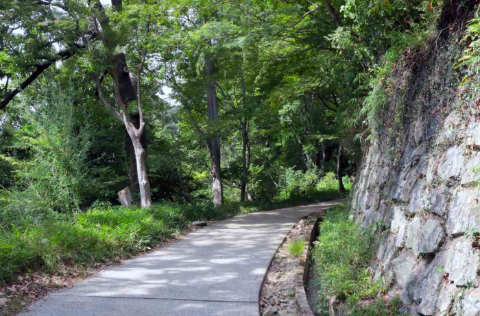 ここまでの住宅街もまぁまぁな上り坂だったのですが、ここからはさらに急になります!後ろ向きで進んでみたり、歩幅を小さくしてみたり、少し前のめりになってみたり…。自分なりの方法で工夫して進んでいきましょう。