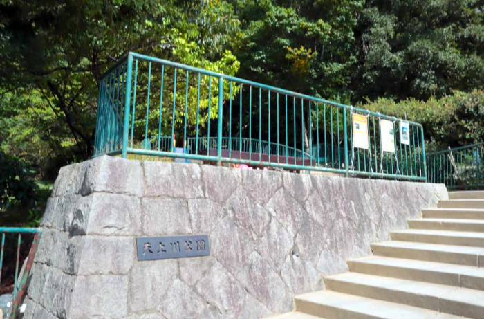 上り坂を登っていくことおよそ5分。「天上川公園」が見えてくるので、中に入りましょう。近くには天上川が流れているほか、園内には遊具もあります。