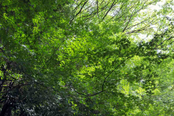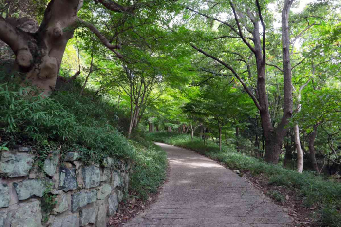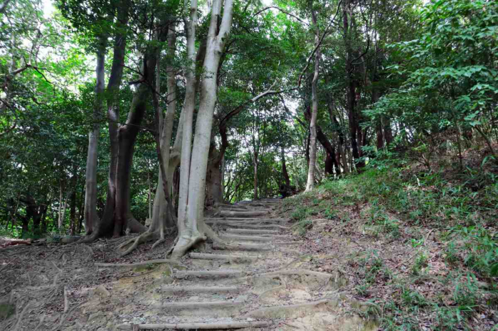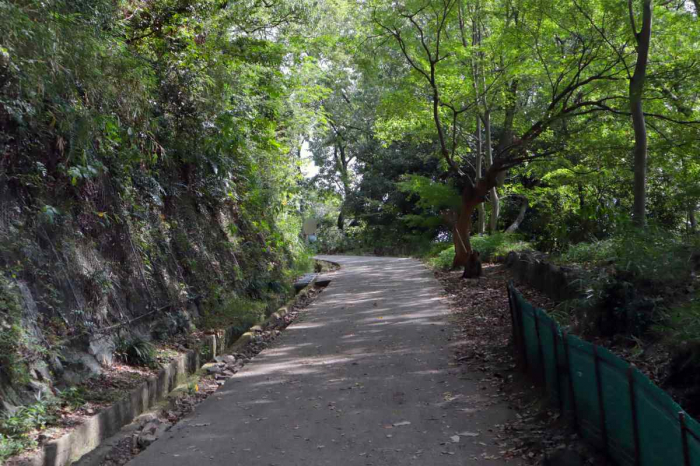 アサギマダラに癒された後は、どんどん坂を上っていきます。坂は確かに急なのですが、道は舗装されており広いため歩きやすいです。木々の間を抜ける風を感じながら、足が弾みます。