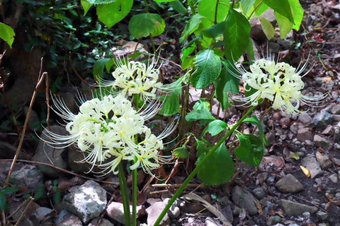 上を見上げると、まだ色づいていない青いモミジがとても美しいです。いつも上っているという方によると、これからの季節は鮮やかな紅葉が楽しめるとのこと。この日は彼岸花も見ることができましたよ♪