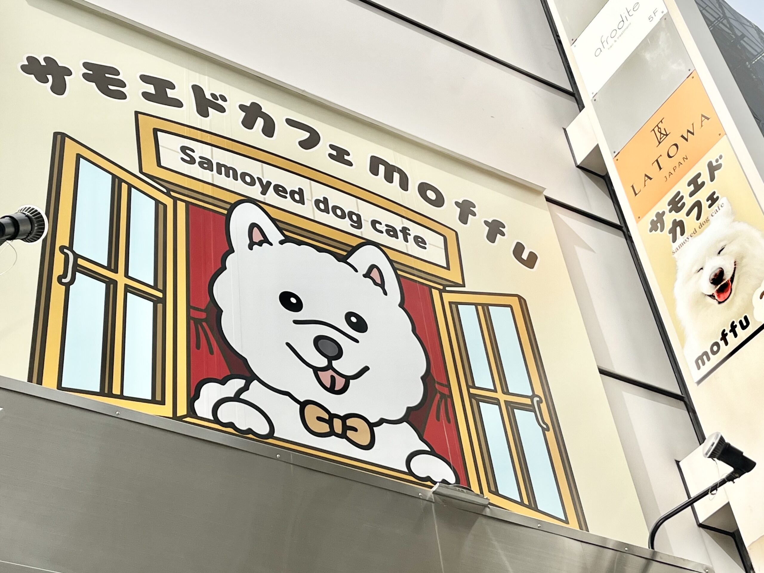 大阪・心斎橋の中心に位置する「サモエドカフェmoffu 大阪心斎橋店」。
