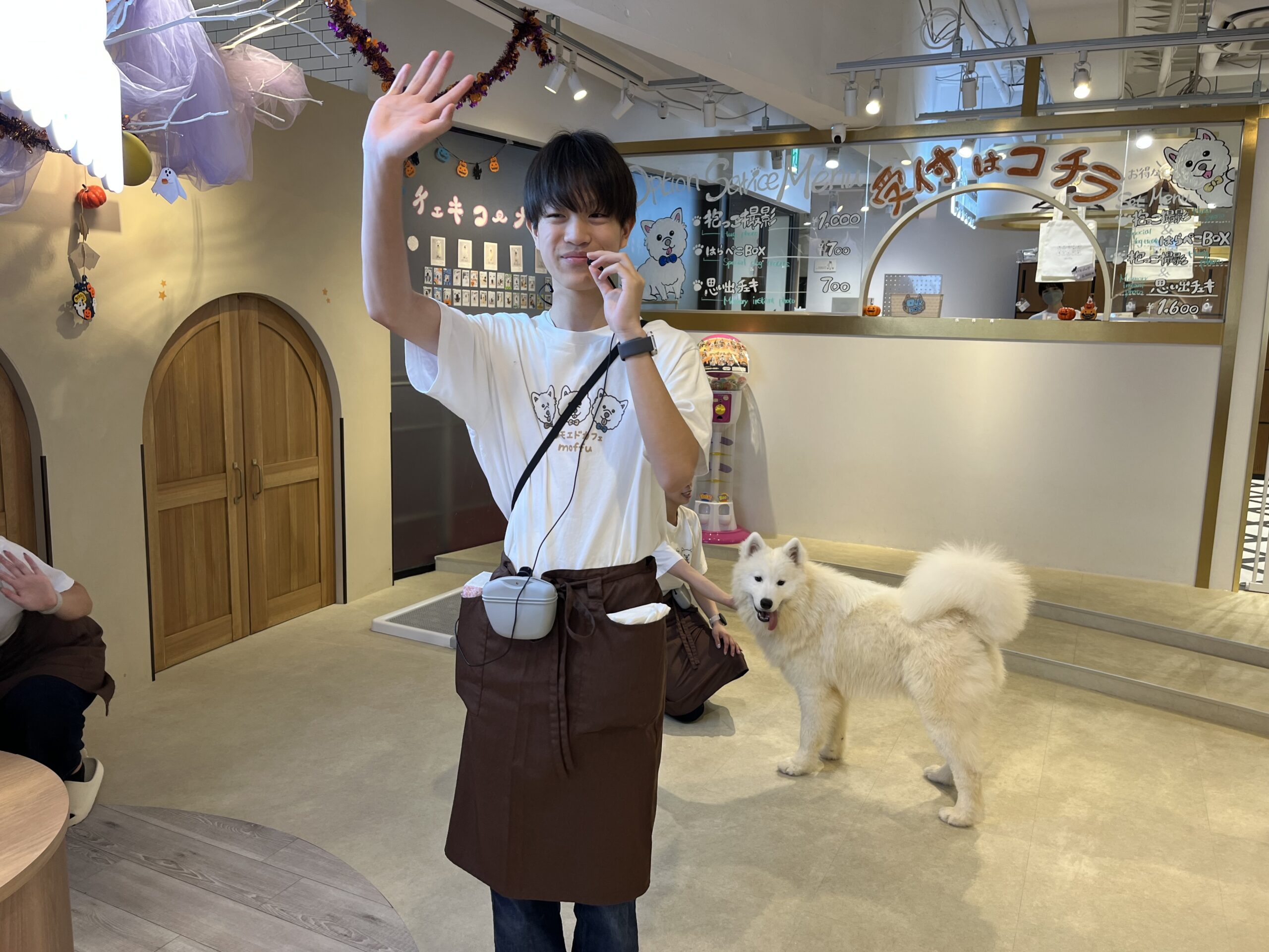店内をサモエドたちが自由に歩き回り、来店者に寄り添ったり、膝の上に乗ったりと、まるで家族の一員のような距離感でふれあえるのが最大の魅力です。