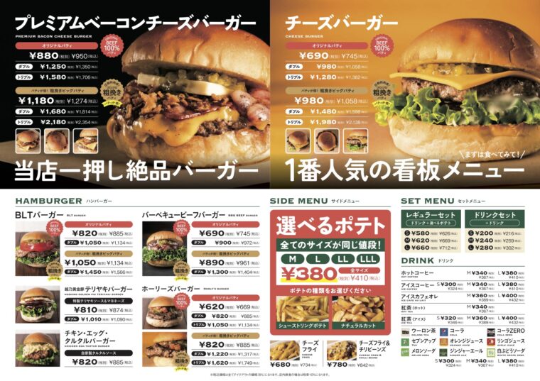 一番人気の『チーズバーガー』がおすすめなのは当然ですが、お店がイチオシするのが『プレミアムベーコンチーズバーガー』。