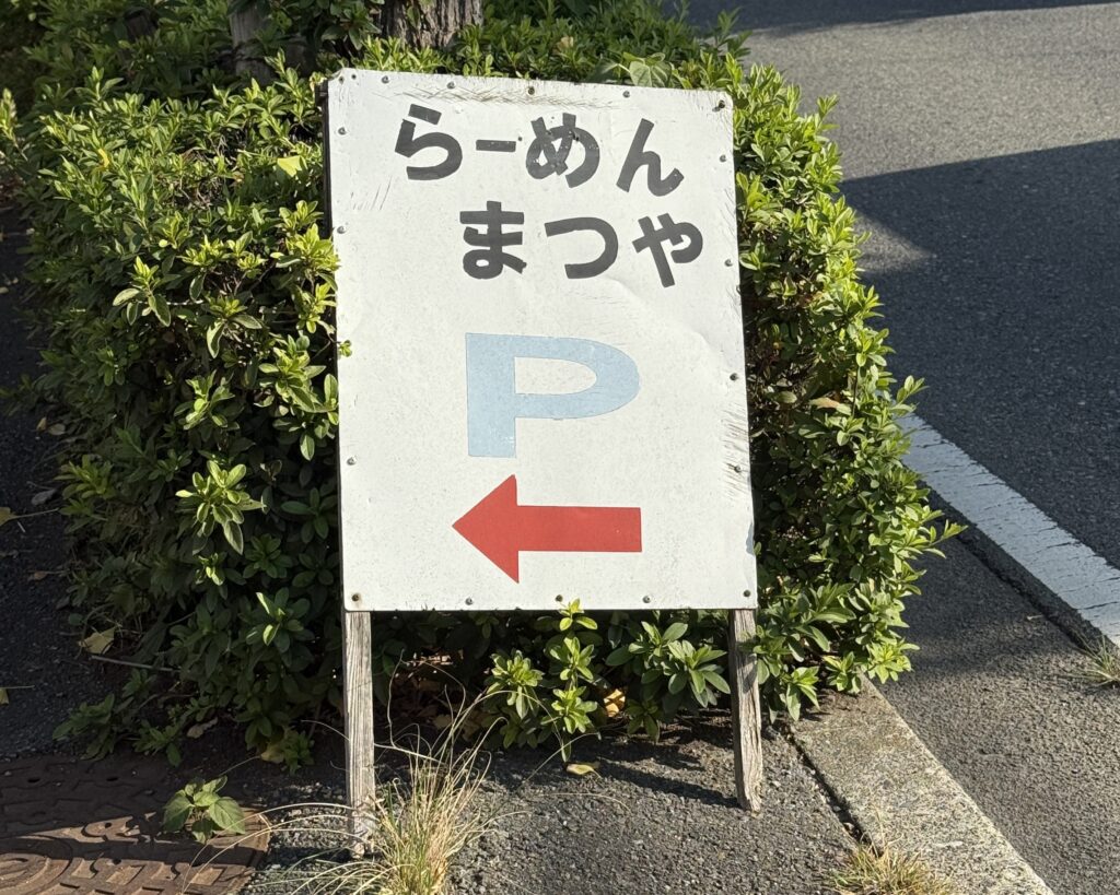筆者は辻堂駅から自転車で訪れましたが、大庭トンネルを抜け、坂を上って下ると県道47号沿いに白い暖簾と「らーめん まつや」と控えめに書かれた文字が見えてきます。のぼりも派手な看板もなく、気を抜くと通り過ぎてしまいそうな静かな佇まいが印象的です。