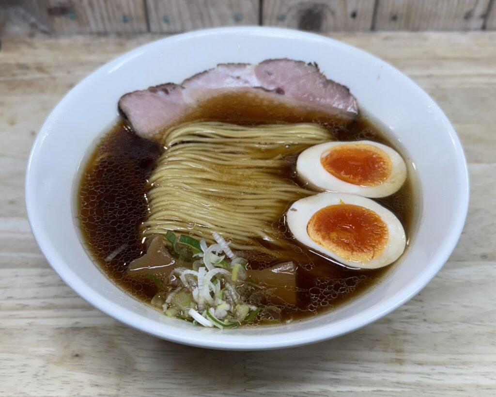 麺は店内でつくる自家製の細いストレート麺。しなやかなコシと、ぱつっとした歯切れの良さが特徴です。麺そのものに風味があり、スープと一緒に口に含むと、小麦の香りがふわりと広がります。