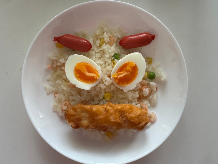私が常食している寂しげな冷食チャーハンにも、ゆで卵・唐揚げ・赤ウインナーを乗せてみたところ……