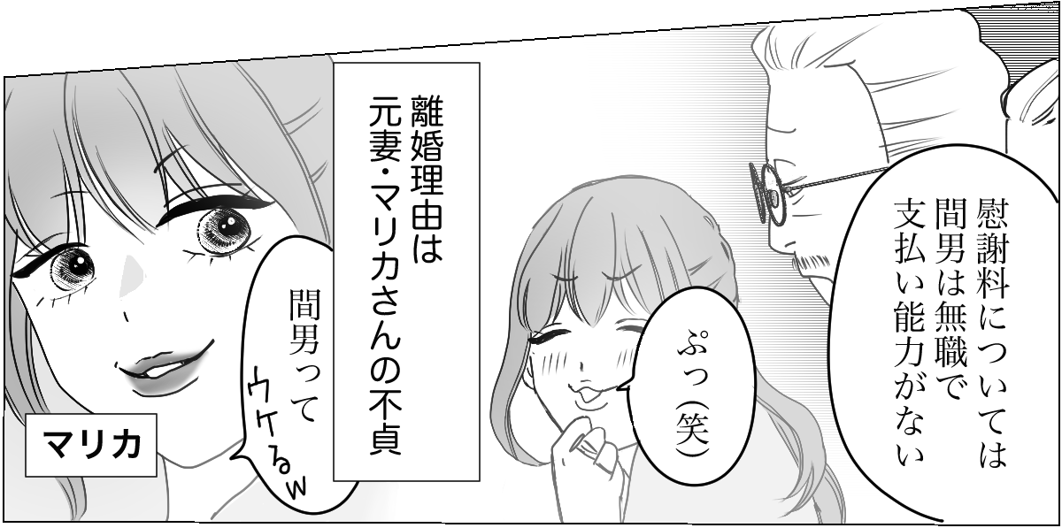 ケイゴはマリカさんと浮気相手の両方に慰謝料を請求したかったそうですが、相手の男性に支払い能力がなかったようで……。