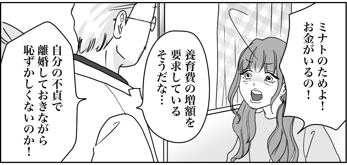 <図々しい請求!>「養育費を増額して!」自分の浮気が原因で離婚したのに…今さら?【まんが】