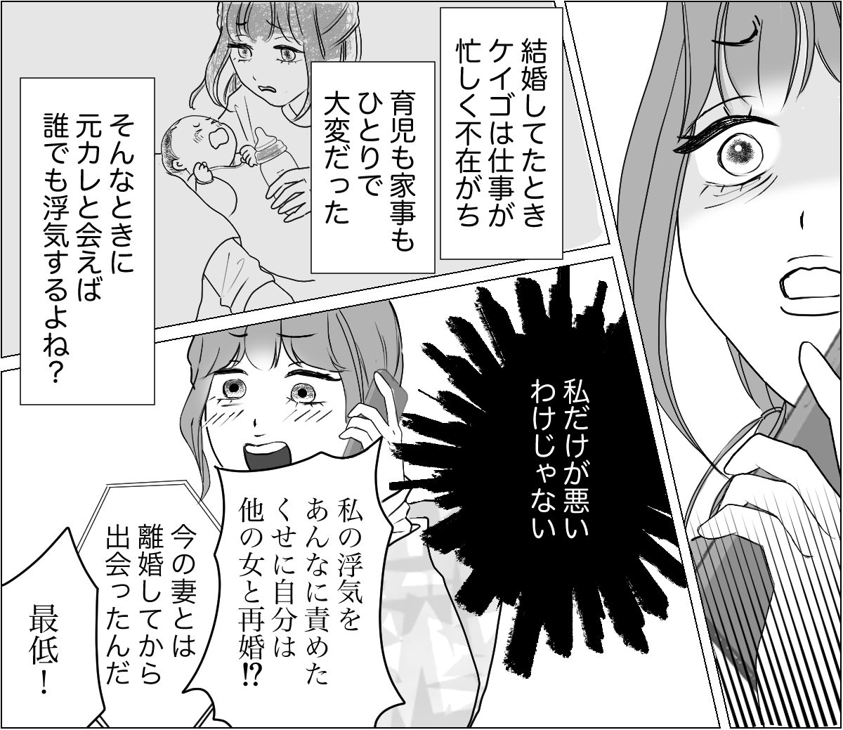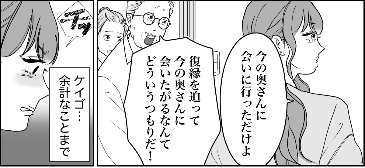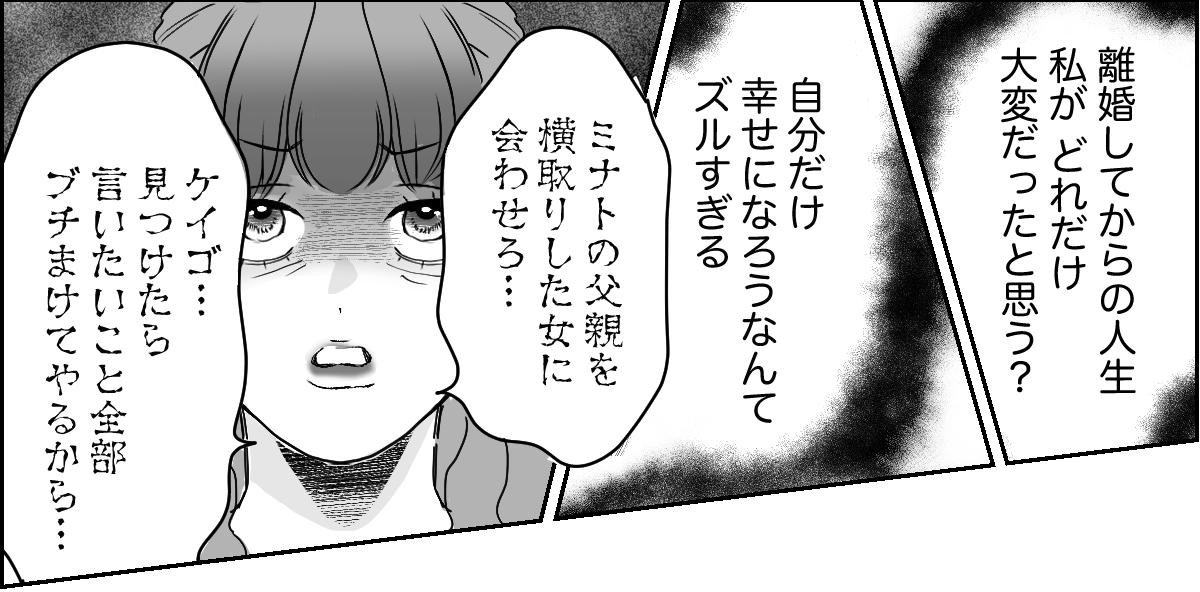 何度、ケイゴが住んでいる最寄り駅で待ち伏せをしてみてもケイゴと再婚相手に会うことはありませんでした。それからしばらくしたある日、自宅で……。