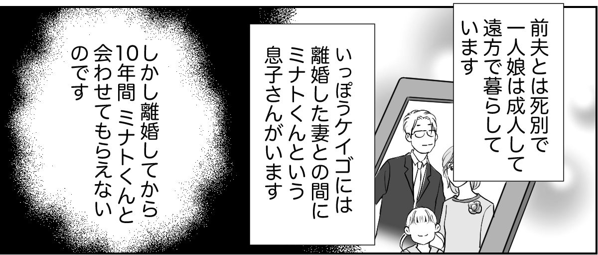ケイゴとマリカさんが離婚したのは10年前。マリカさんの不貞が原因でした。