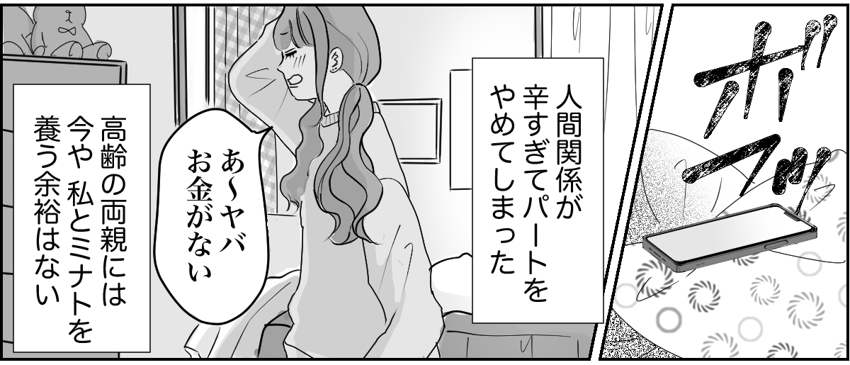 昼間からこんな風に部屋でスマホを見ていられるのは、私が今、無職だから。パートで勤めていた会社を、人間関係のいざこざで先日辞めてしまったのです。