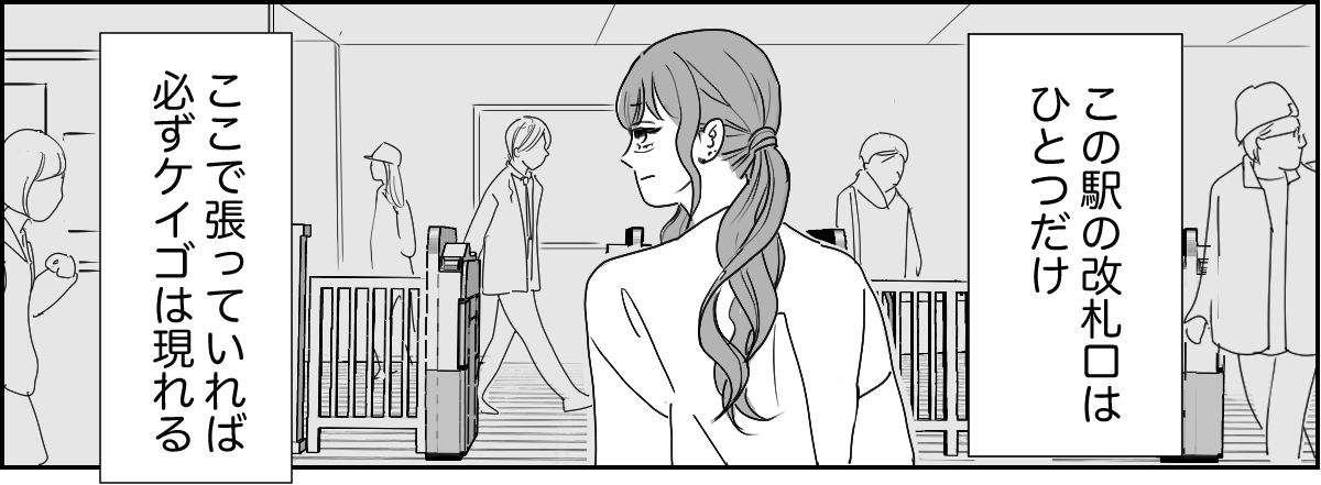 ケイゴの再婚相手の顔なんて全く知りません。でも自宅近くなんだから、ケイゴと2人で通りかかる可能性もあるかもしれません。私は帰宅ラッシュの時間、駅前で待ち続けました。平日だけでなく、土日の昼間にも何度か行ってみました。ですが、なかなか見つかりません。駅前のマンションは2棟あるので、そこから顔を出さないかとそれぞれのベランダにも目を光らせますが、結果はさっぱり……。