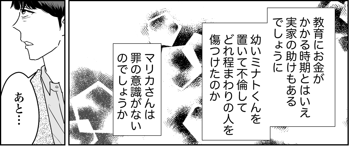 浮気されたのに1円も受け取らず離婚した、そのときのケイゴの気持ちを汲んであげてもいいのではないかとも思ってしまいます。ケイゴはミナトくんのことを考えて、ぐっと怒りや悲しみを我慢したのです。とてもツラかったと思います。