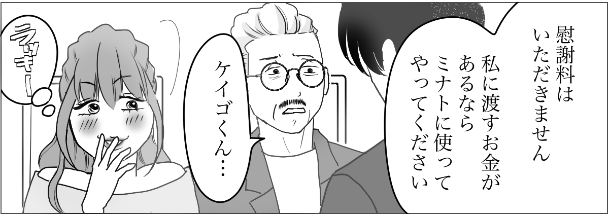 マリカさんと浮気相手にお金がないことをケイゴはわかっていたので、これ以上もめて心がすり減るのを少しでも避けたかったのだと思います。