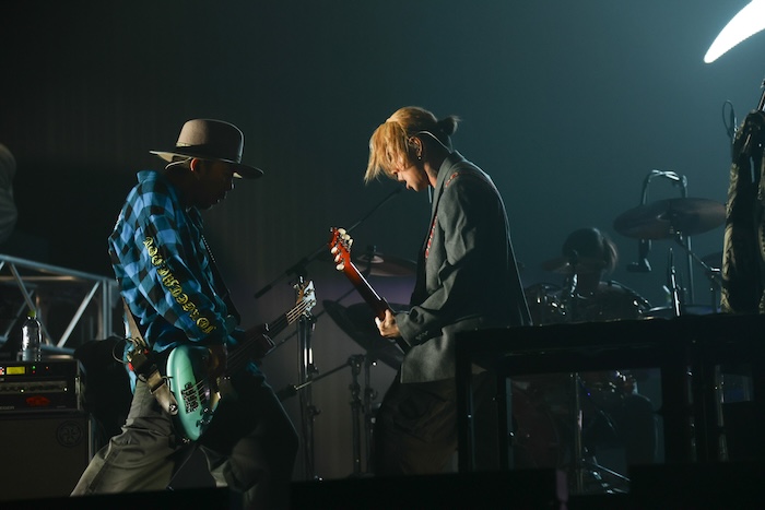 一息つくように空気感が変わったかと思えば、そこから披露されたのは『Jump』。イントロが鳴り出した瞬間に上がる歓声が、その人気ぶりを物語る。序盤は抑えたグルーヴでじわじわと熱を高めながら、中盤以降で一気に解放。タオルを振り回す観客、拳を突き上げる観客、それぞれが思い思いに身体を揺らし、サビではフロア全体がその名の通り「ジャンプ」で揺れ動いた。