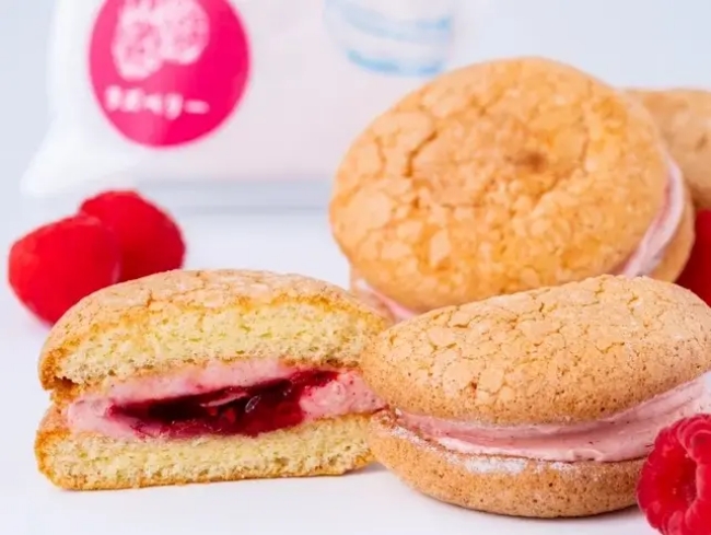 甘酸っぱさが魅力の『Hug “raspberry”』(400円)は、北海道産バターと北海道帯広産ラズベリーをピューレにしたものを合わせたラズベリーバタークリームがサンドされています。