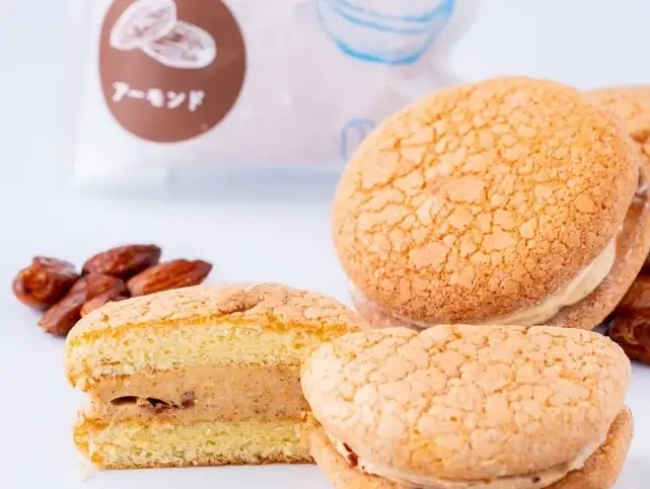 北海道産バターと自家製プラリネアーモンドを合わせたプラリネアーモンドバタークリームがサンドされた『Hug “almond”』(400円)は、バターとアーモンドの香りが響き渡ります。