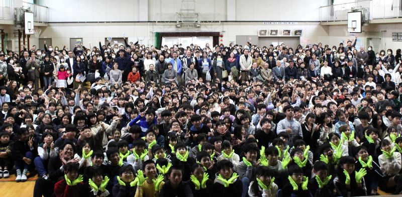 学校によると、この日の参加者は児童が500人弱。それと同じくらいの面積に大人たちが集まっていたので、全体で1000人には届かないものの、800人にはなるのではないかという大人数だった。学校では参加者の集計を急いでいるという。集まった人全員が世代を超えて、気持ちをひとつにしてうたいあげた。
