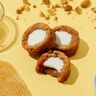まずは『キーマカレーパン』(380円)。可愛らしい小ぶりなサイズのパンの上にはパン粉がまぶされていて、焼きカレーパンのような仕立てです。中には、スパイスの香り豊かな自家製キーマカレーがぎっしり!