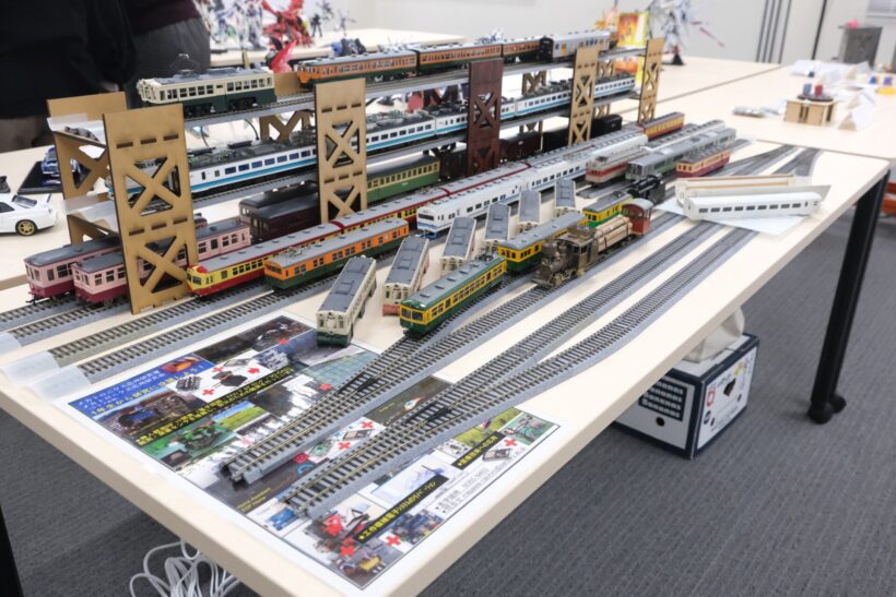 会場には「ガンプラ」から鉄道プラモデルまで、多種多様な作品が並んだ(写真上2枚)