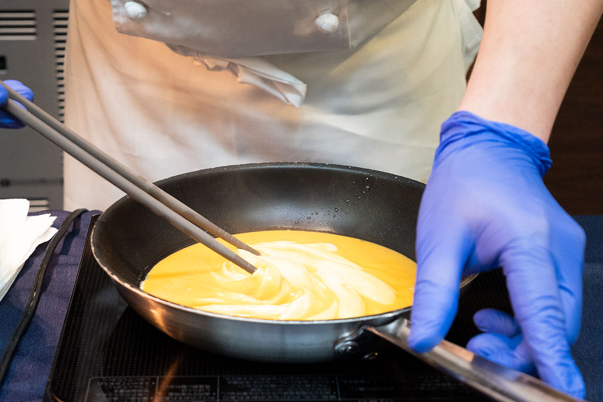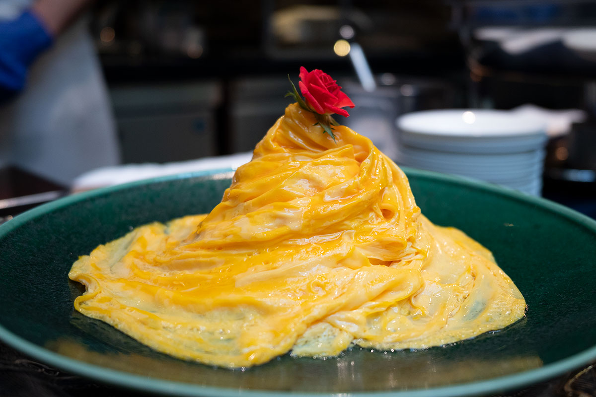 まずご紹介するのは、「ハース・ファンタジーステイ」プラン宿泊者限定の「ファンタジーダイニング朝食」。「東京ベイ舞浜ホテル」時代から人気のシグネチャーメニュー、プリンセスドレスをモチーフにした「ドレス・ド・オムレツ」がモーニングメニューとして提供されています。その華やかな見た目はもちろん、何度も改良を重ねたというこだわりの味わいも魅力。朝から特別な気分を楽しめる一皿です。