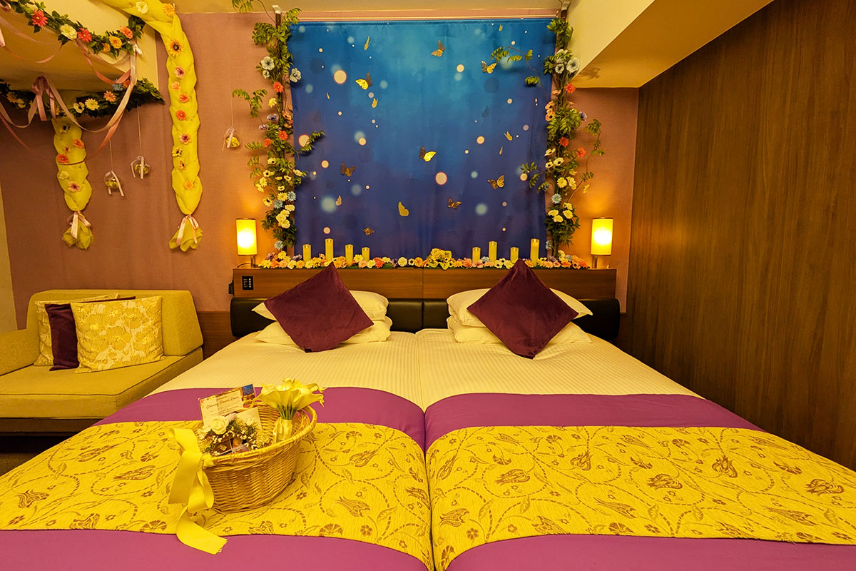 また、カーテンを閉めた落ち着いた雰囲気と、陽光が差し込む明るい雰囲気の二つの表情を楽しめるのもテーマルームの魅力。日常では味わえない特別な時間を過ごせる点も魅力。