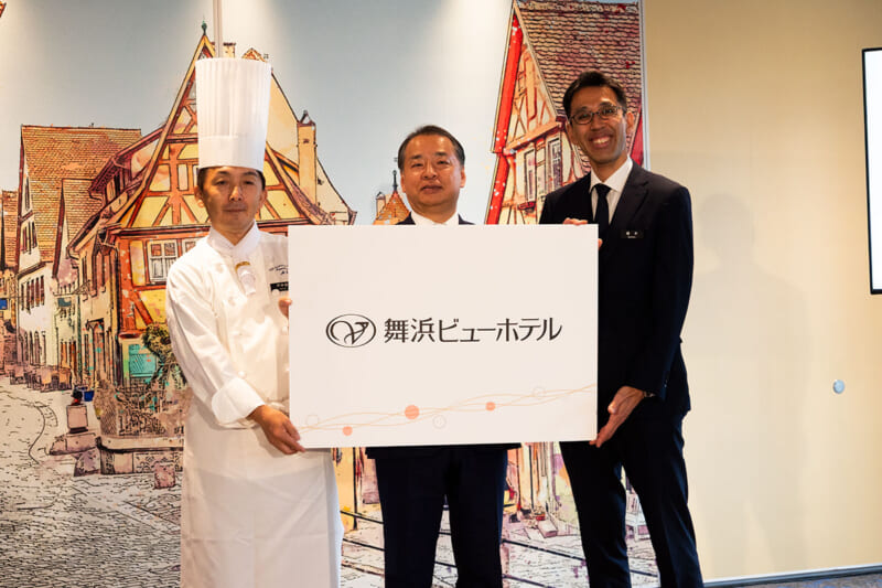 セレモニーでは、ヒューリックホテルマネジメント株式会社 代表取締役社長・大町祐輔氏(写真中央)、「舞浜ビューホテル by HULIC」総支配人・鈴木裕樹氏(写真右)、「舞浜ビューホテル by HULIC」料理長・戸井田誠氏(写真左)から挨拶があり、終始和やかな雰囲気で幕を開けました。