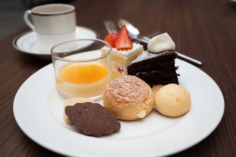 宿泊者でなくても楽しめる期間限定メニューとして登場したのが、リブランド記念デザートプレート「あゆみ」です。プレートには、長年愛されてきたホテルの焼き菓子などが中心に並び、懐かしさと優しさを感じる変わらない味わいを楽しめます。さらに、コーヒーまたは紅茶がセットになって、なんと1,000円(税込)という嬉しい価格も魅力。思わず足を運びたくなる一皿。