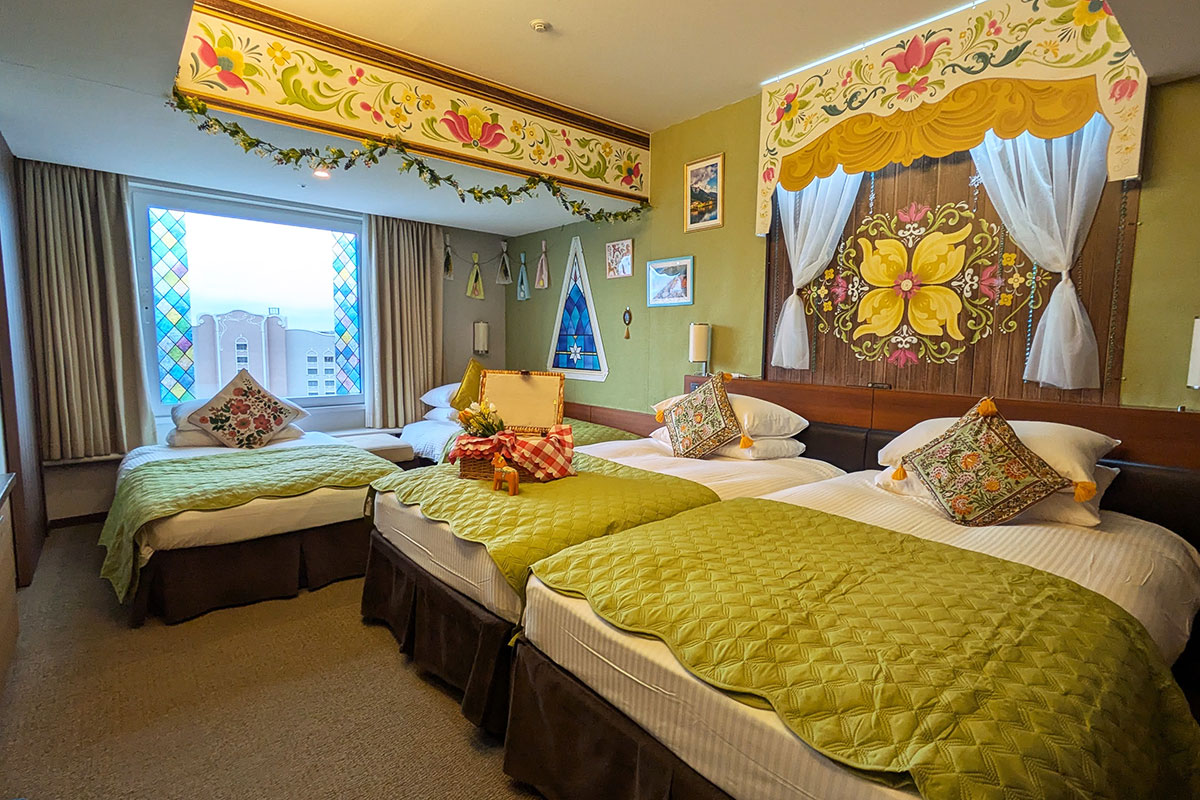 客室は、スタンダードフロアとハースフロア(エグゼクティブフロア)に分かれています。今回内覧したハースフロアは高層階の10・11階に位置。リブランドを機に、特別なひとときを過ごせる期間限定テーマルーム「ノルディック・ヒュッゲルーム」も新登場しました。既存の「グローイングフラワールーム」「アラビアン・ミラージュルーム」とあわせ、異なる3つの世界観を楽しめるため、パークから戻った後も夢見心地の体験ができます。
