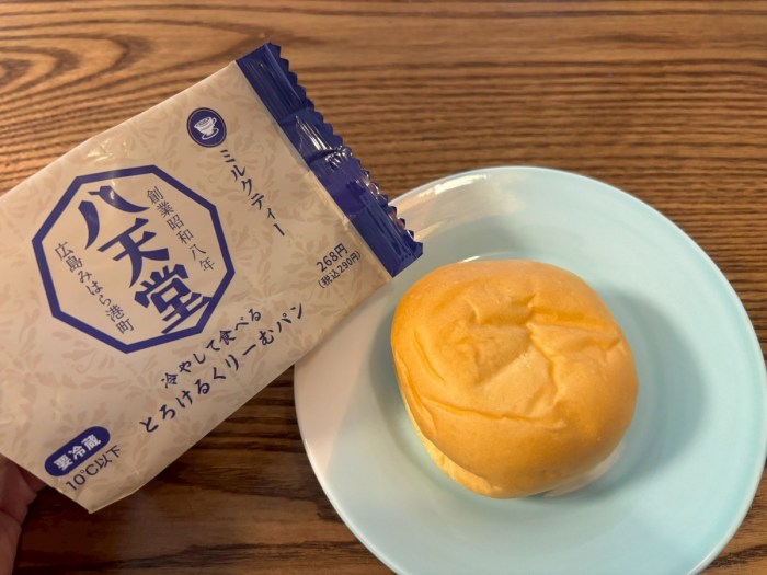 今回は、ファミリーマート限定の「冷やして食べる とろけるくりーむパン ミルクティー」選んだ。相変わらずのしっとりした生地に軽やかなクリーム。