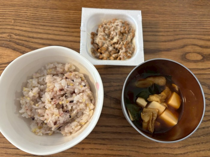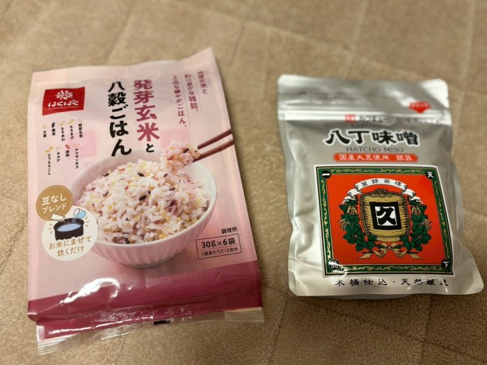 1日の始まりは食事からである。まずは8が名称に入っている、八丁味噌の味噌汁と八穀米を用意することに。