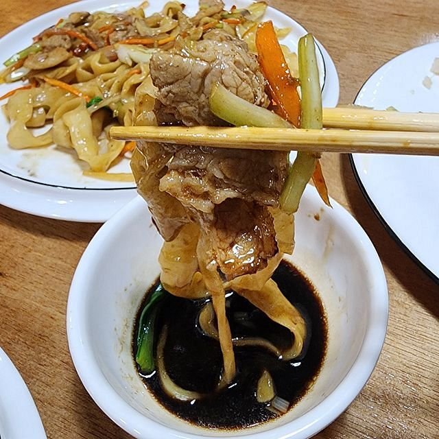 オイスターソース系炒め麺!と言うプレーンで食べやすい味付けなのですが、味変アイテムに黒酢がそえてあり、それにつけると、又また美味しくて、ふうふういいつつ何とか完食。焼きそばが若干少な目で救われました汗。いやはや喰った喰った。
