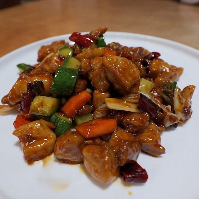 更に2品目、あ、お手軽価格で置いてある!と思いまして久々に食べてみたくなった「宮保鶏丁(コンバオジーディン)」、鶏肉とピーナッツの辛味炒め¥980なり。いやー、「辣子鶏(ラーズーチー)」より断然辛くないのですが、このチョイピリ辛甘ダレが激しく、激しくウマー!ですな。 中辛のカレーが食べられるお子様なら大丈夫!なレベル。緑の野菜は胡瓜なんですが、タレにマッチしていて断然美味しい。白飯に乗っけたい~。