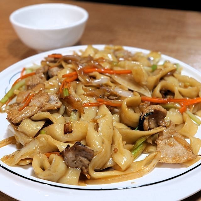 とどめに出てきたのは現地系メニューからチョイスした「肉炒麺」(豚肉焼き麺)¥980なり。いやー、こういう手でひねった様な平打ちの太麺で、これまたなかなかめっちゃいいお味。豚とセロリが良く合いますな。