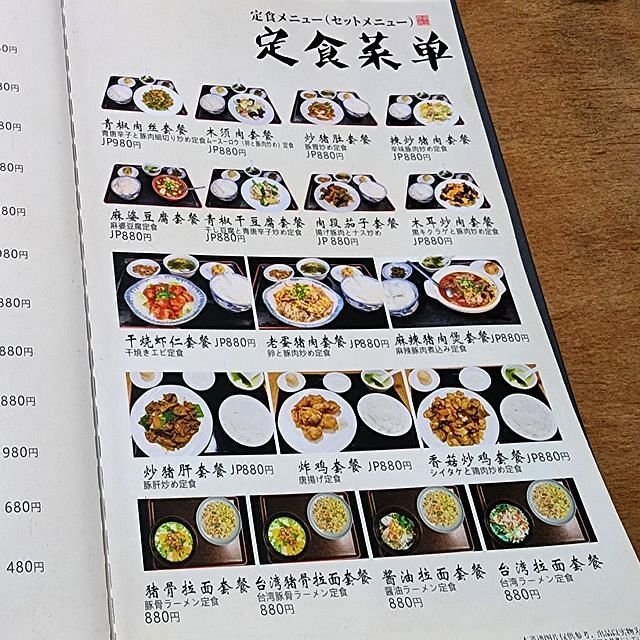 まずは、普通の人はこれにチャレンジすると思われる定食類がこちら。未だに麺類と炒飯のセットが税込み¥880!で頑張っておられるわけで。いやー、めっちゃお安い&学生応援価格かよ!ですな。で、これだけでなく、メニューが超豊富。それも四川料理!などの一つの地方料理だけでなく・・・