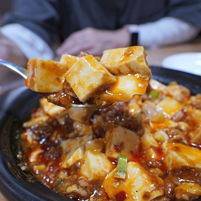 まずは1品目。スマホの電子メニューには「ガチ中華」のカテゴリーと、「和式中華」がありまして、ガチ中華のほうは「蒸し魚」や「干し鍋」などのガチなモノがスタンバイ。こちらは和式のほうにあった「麻婆豆腐」¥880なり。ランチセット用だと思われますな。